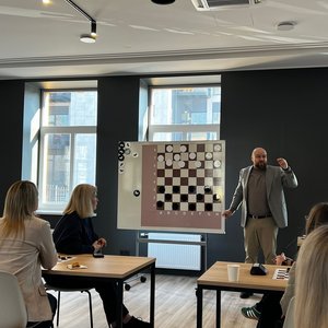 "Šo pirmdienu izvēlējāmies sākt mazliet citādāk - ierastās pirmdienas sapulces vietā devāmies asināt savas prāta spējas dambretes turnīrā mājīgajās RIFS - aktivitāšu centrs ģimenēm telpās!
